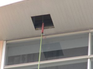 ロープで下降中、写真のように、どうしても何かにこすれてしまうケースがあります。